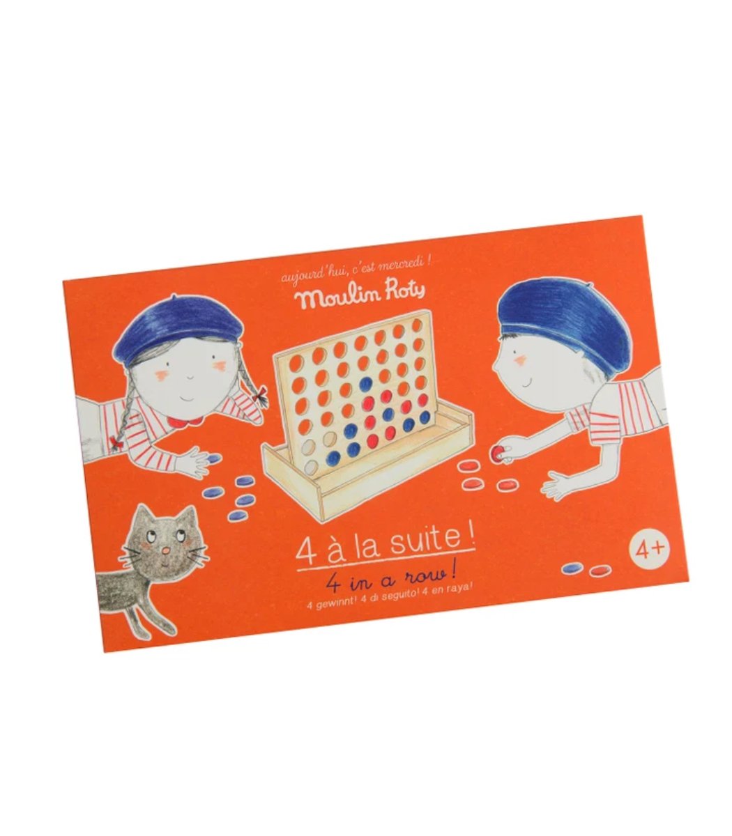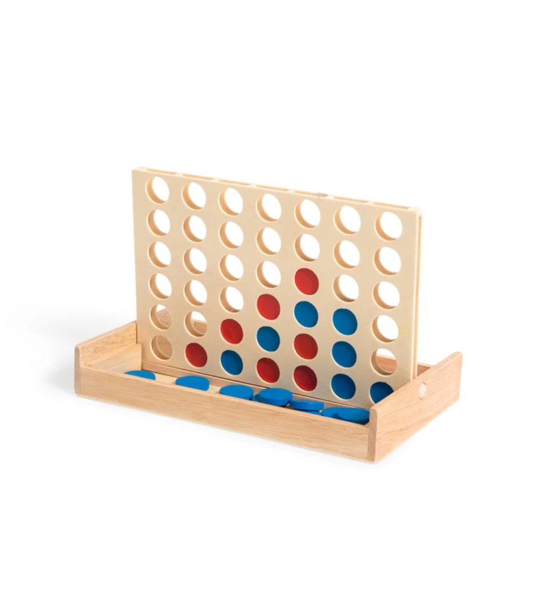 A wooden game board that's easy to set up, with 42 discs for playing 4 in a row on the go or at home! The first player to align 4 of their discs in the same colour wins the game!