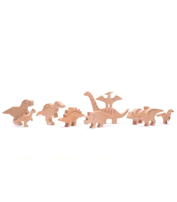 A set of 10 beautifully crafted wooden dinosaur figures that transport little ones back to the prehistoric era. Each dinosaur is designed to fit perfectly in small hands, encouraging imaginative and creative play. The packaging serves an additional purpose—simply cut along the marked lines to create a dinosaur-era backdrop for even more immersive play.