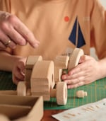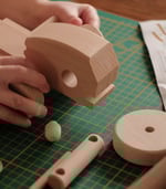 A wooden construction kit that lets kids assemble the toy step by step. The set includes all parts.