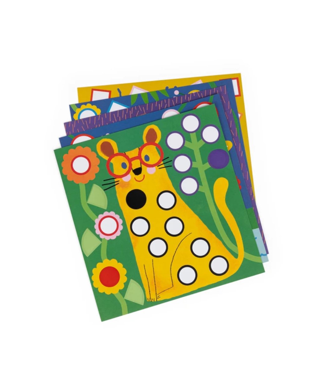 Here are 10 Toupitis animals illustrations to decorate with 300 colourful geometric stickers. Designed by Moulin Roty to help little ones explore shapes and colours, each picture provides easy-to-follow outlines for sticker placement.