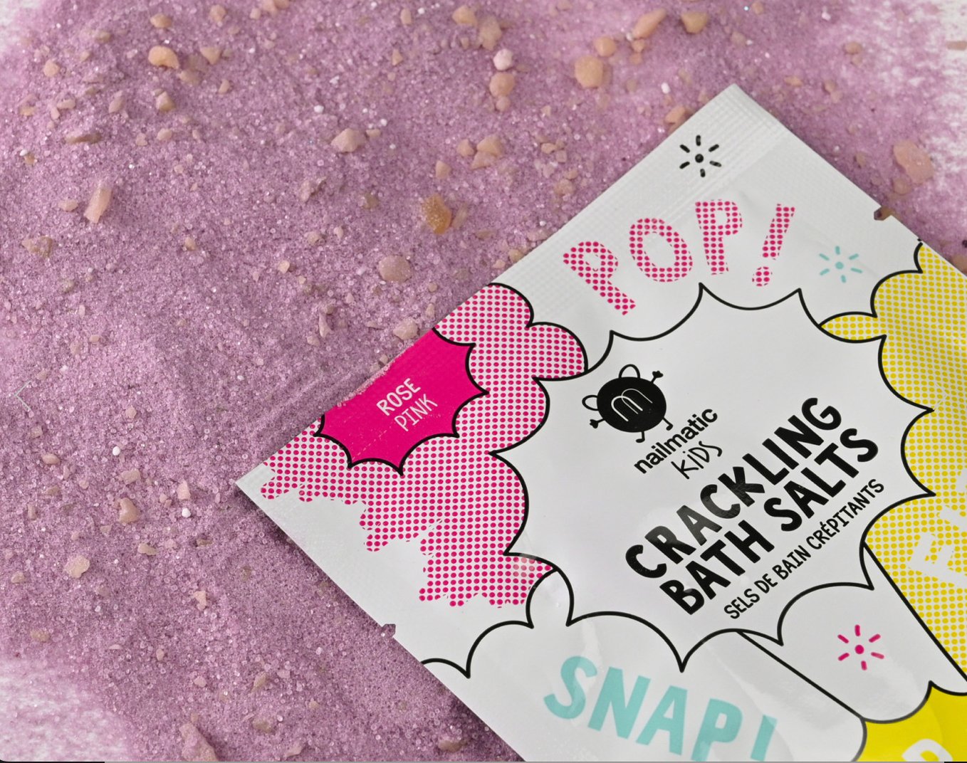 Crack, pop, fizzz… Once sprinkled, our crackling bath salts turn the water pink with amazing aquatic firework effects.