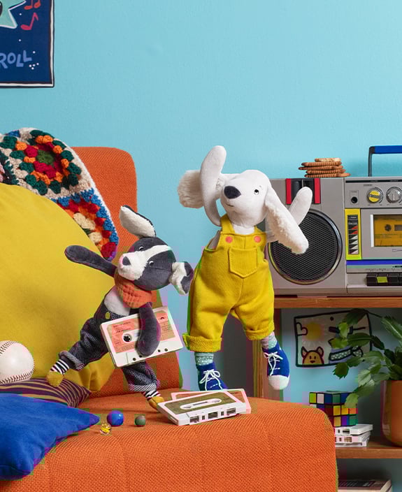 With its fluffy ears and comforting arms, Puce is the perfect friend for sharing fun times! Part of the Puce&Pilou collection by renowned toymaker Moulin Roty.